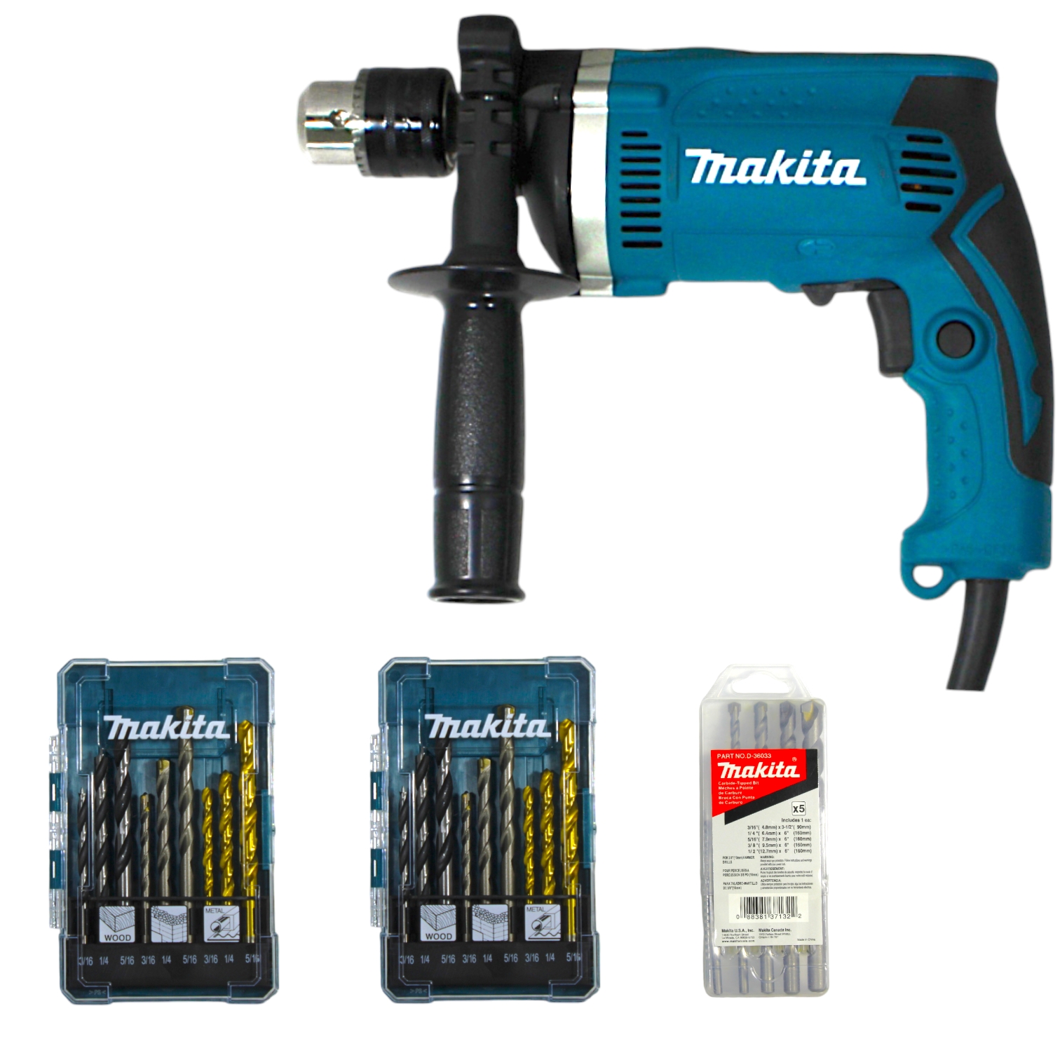 TALADRO PERCUTOR 1/2" 720W HP1630 + 2 JGOS DE 9 BROCAS D-719 ...